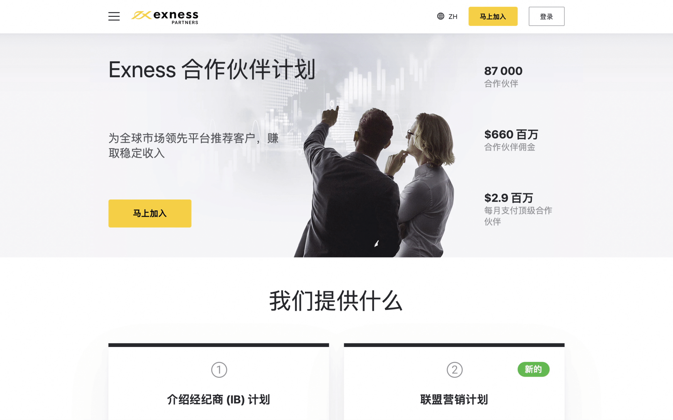 该版块列出了EXNESS提供的各种不同的合作伙伴佣金计划以及相应的佣金比例。 此处找到的信息易于理解,是查看相关合作伙伴佣金结构详情的另一种方法。