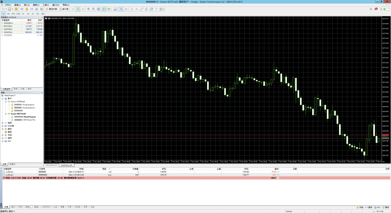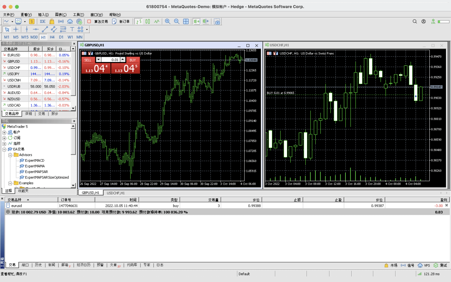 1. 交易选项卡中双击任一对冲单, 打开订单窗口。