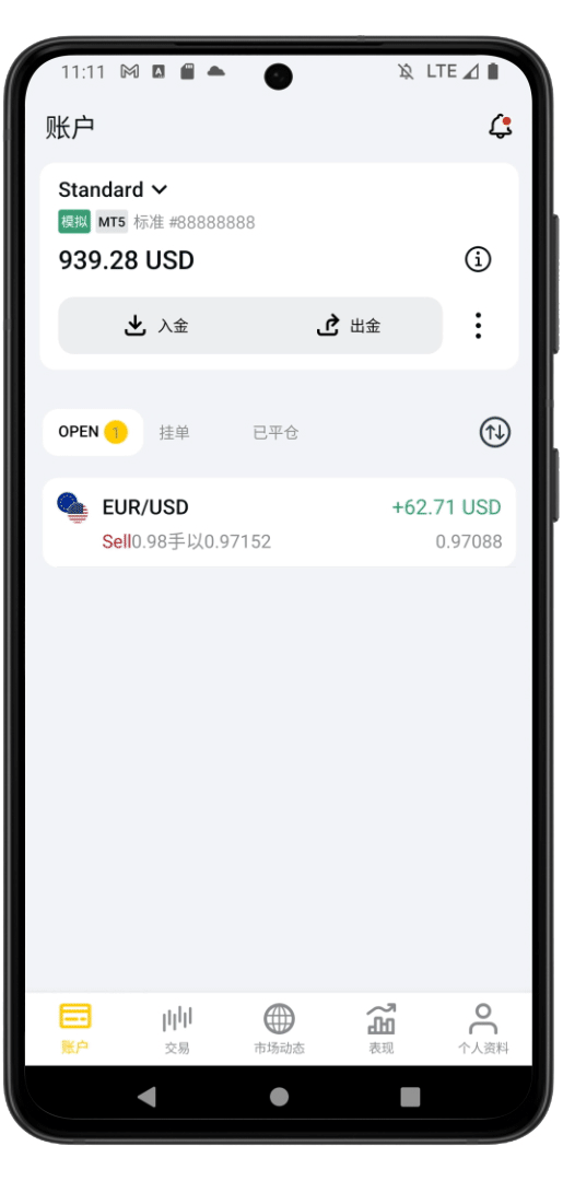 1. 长按交易选项卡中的订单,打开选项。 点击平仓