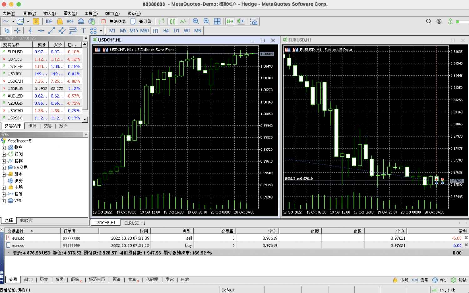 您可以使用自己平仓订单的价格进行相互平仓,并通过确保平仓价格与您的预期一致对系统收取的点差进行控制。 只有当交易品种的后缀统一、仓位相反时方可使用相互平仓。