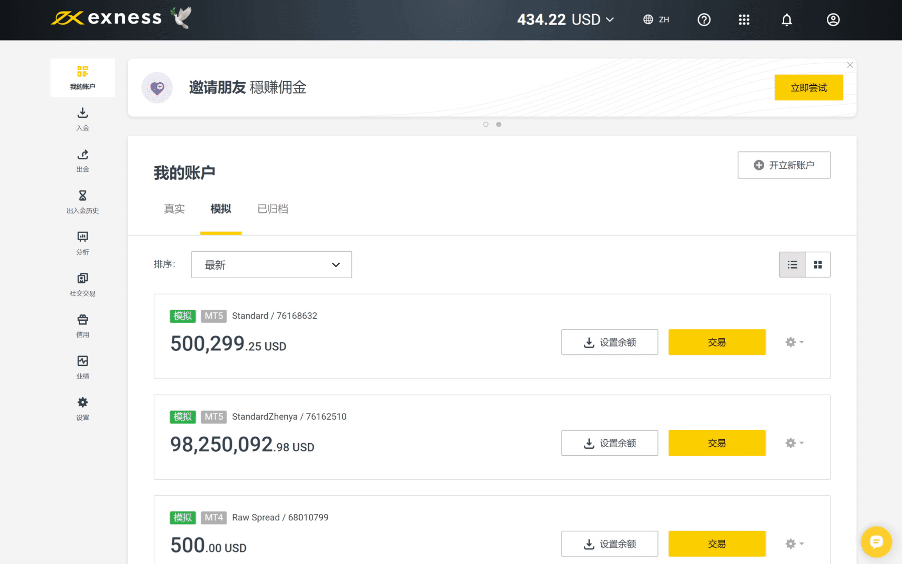出入金历史将以列表的形式列出您在自己的账户上进行的每一笔交易。列表中的每一栏都会包含一个专属的交易单号,您也可以看到交易的类型**:出金**、入金转账