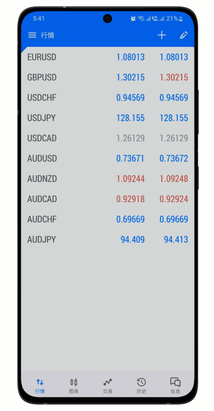 • 进入交易选项卡,点击屏幕右上角的 + 号。