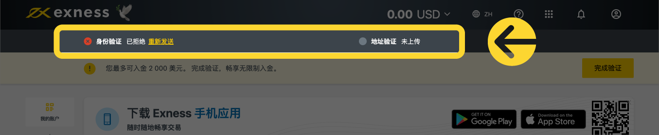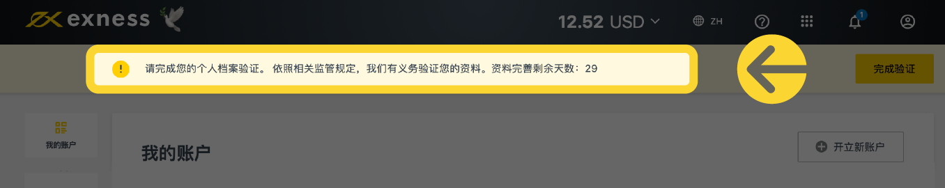 5. 如未能在30天内完成账户验证,将无法继续使用入金、转账、及交易功能,直到全面验证Exness账户后才可恢复。