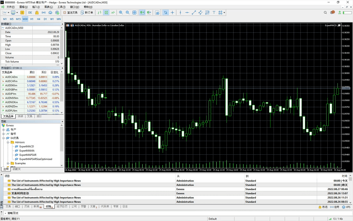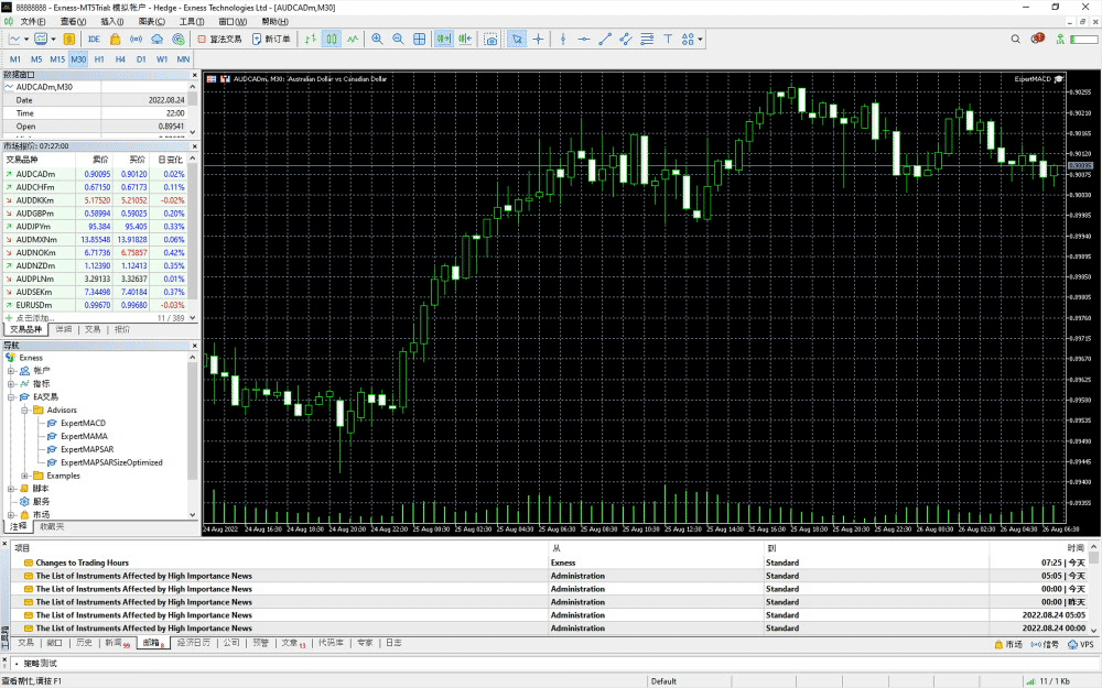 EXNESS可以通过内置的配置文件功能轻松加载可优化性能的设置。 之后您就可以根据需要在不同的配置文件之间自如切换了: