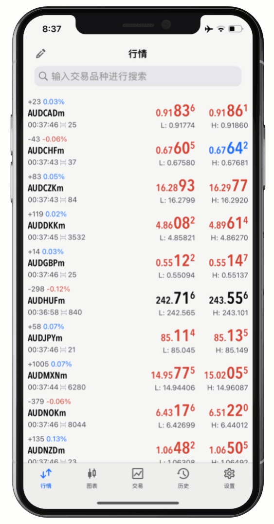 在 iOS 系统 MT4 和 MT5 应用程序上启用买价线步骤:
