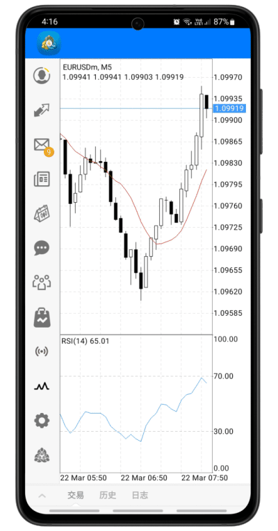 在安卓系统 MT4 应用程序上启用买价线步骤: