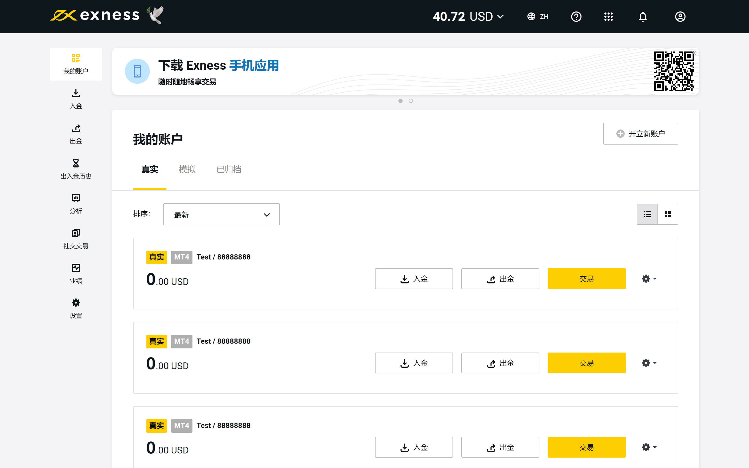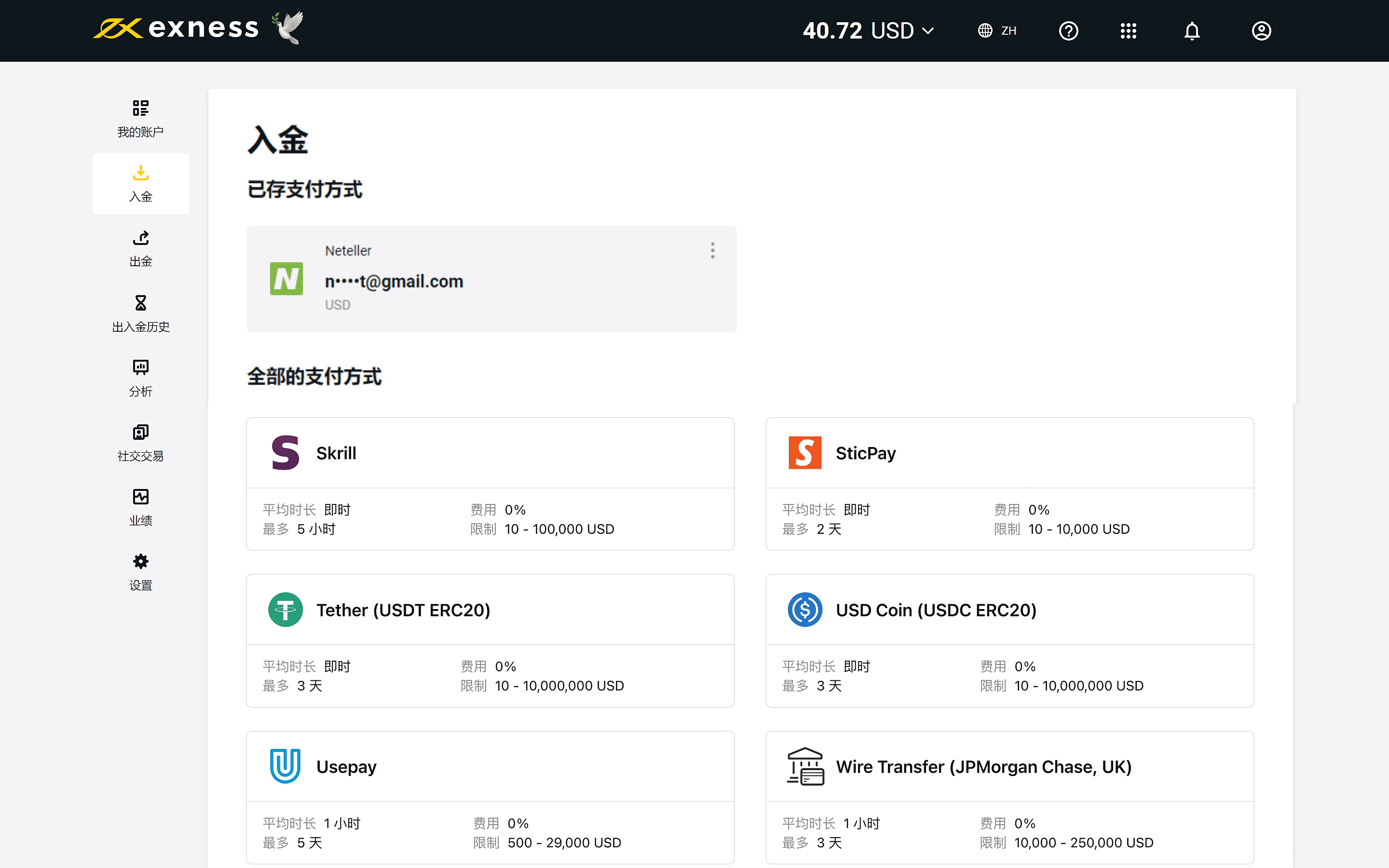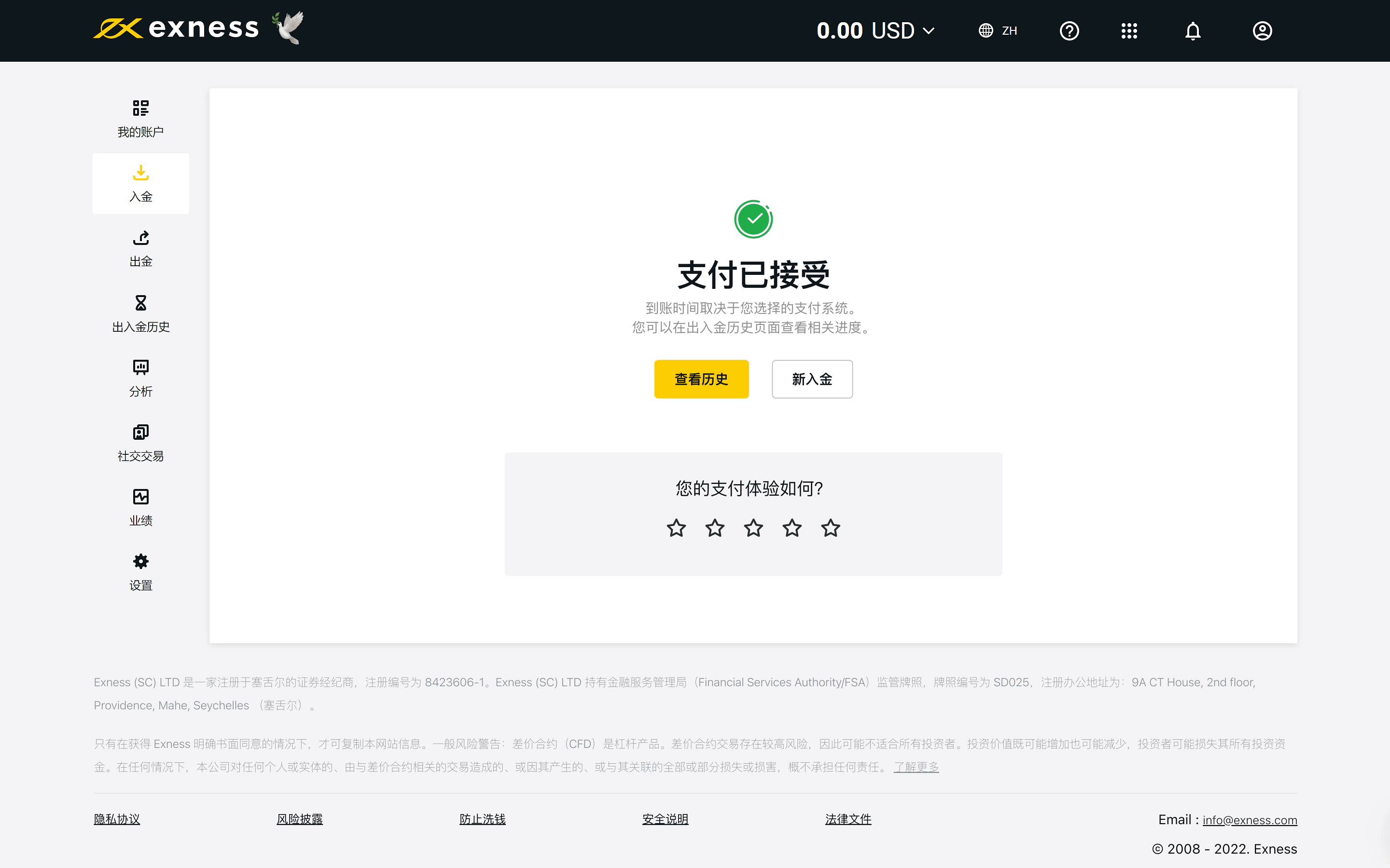 系统会在您成功入金后自动创建支付档案。 该档案随即就会显示在您的入金页面。