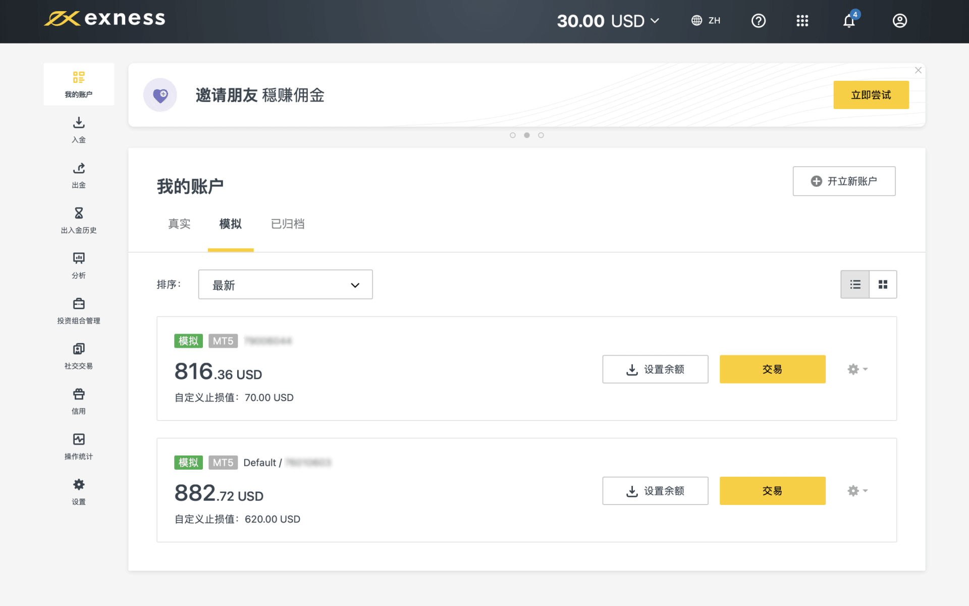 • 目前无法在Exness 交易应用上设置自定义爆仓。