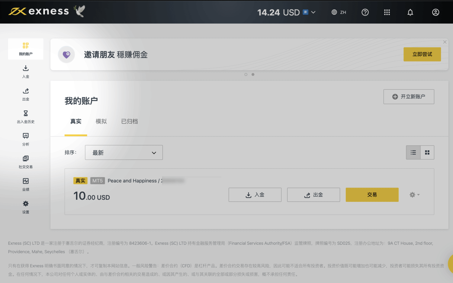 请注意:只有在满足退款要求的情况下,才可以提取收益部分的资金;申请提取收益时,个人专区会显示退款要求。您可以在EXNESS的文章中详细阅读这方面的介绍,了解您所需要知道的有关出金的全部内容
