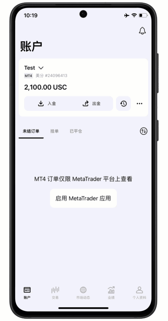 业绩统计选项卡全面概述了您的单个或所有交易账户的交易活动情况。 您可以通过界面底部选项卡或 “账户”界面左下角访问此选项卡。 您可以切换选项卡查看交易账户的 净利润净值订单总数交易量等详情;您也可以输入不同时段和交易账户号码以筛选每20分钟更新一次的数据。