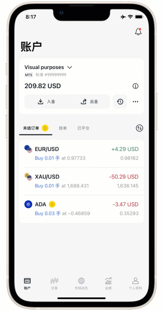 Exness交易应用可让您随时随地管理您的交易账户设置。