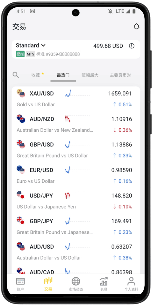 如果您想在MT4账户上交易,就需要在谷歌Play或苹果的应用商店下载MT4手机应用。