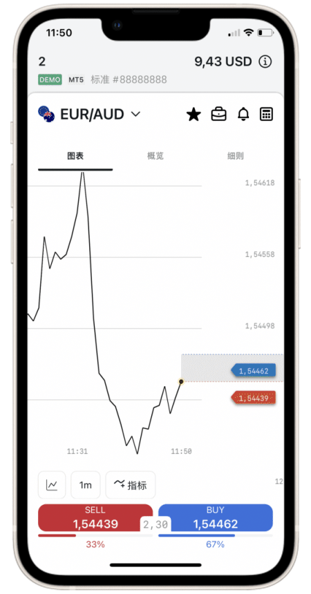 点击交易选项,选择交易品种并下单。 请注意,内置交易终端仅适用于MT5账户。 如果您登录的是MT4账户,系统将跳转至手机上的MT4手机应用登录/下载页面。